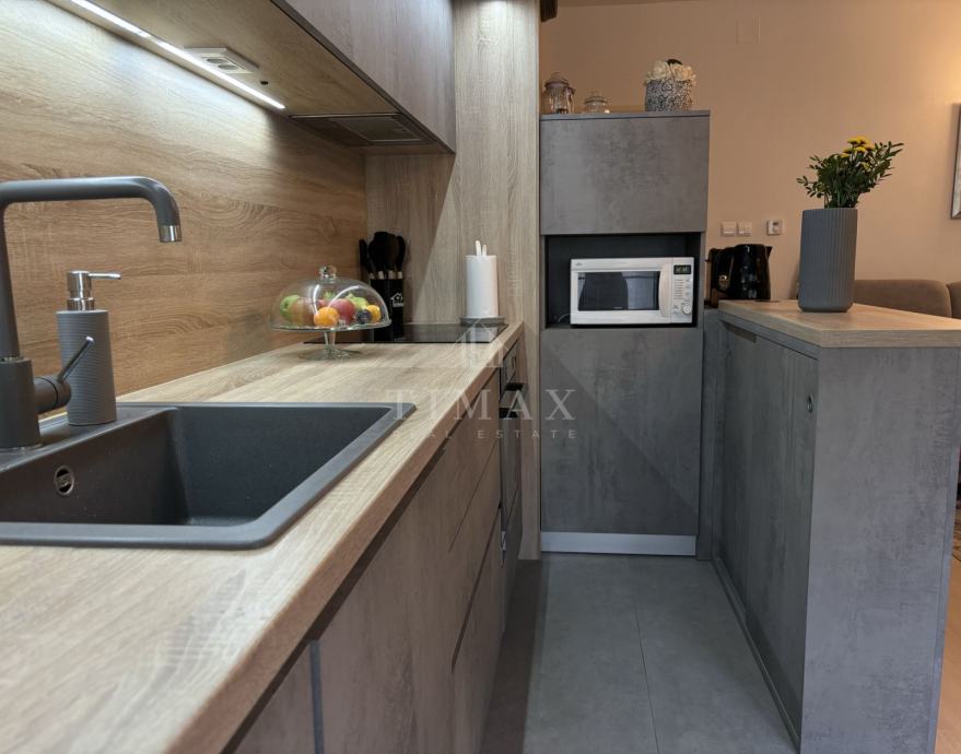 Stan je adaptiran 2021. i kompletno renoviran (novi podovi, kompletno nova kupaonica, ugrađena PVC stolarija i ulazna protuprovalna vrata, novi namještaj - sobe, dnevni boravak i kuhinja). Stubište u kući je uredno i održavano.