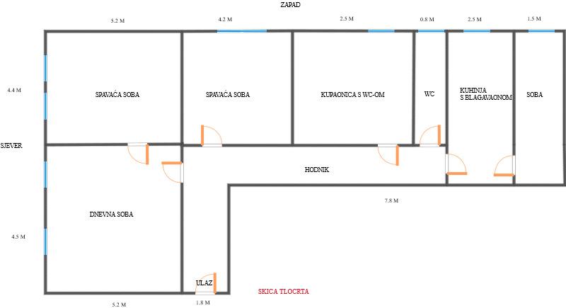 Grijanje plinsko etažno. Orijentacija: sjever-zapad.