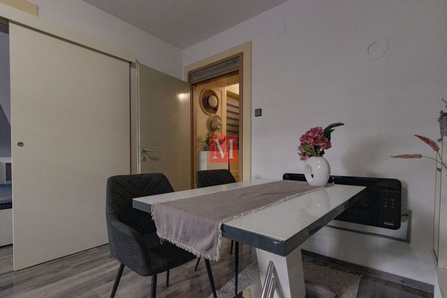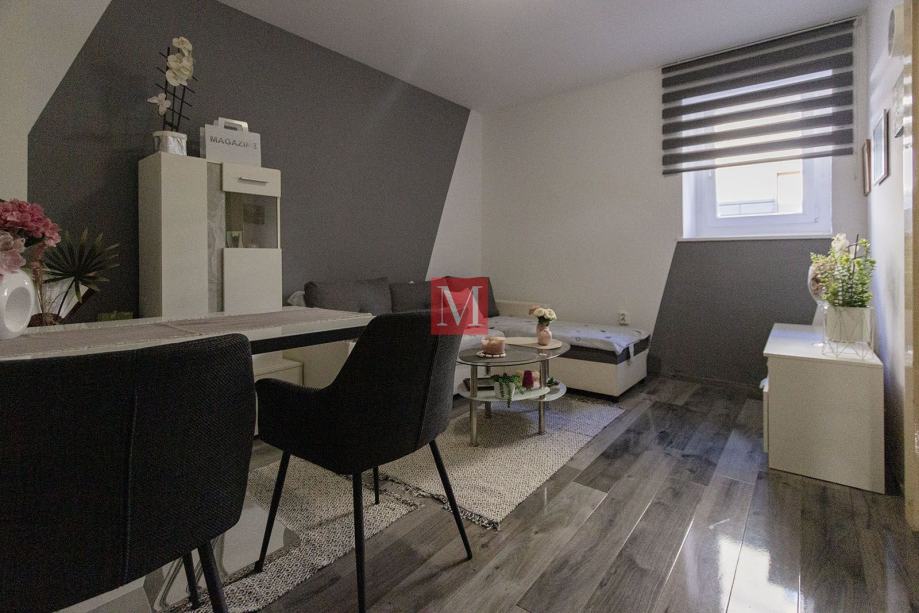 Dnevni boravak i blagovaonica čine kompaktnu i praktičnu cjelinu, dok je spavaća soba odvojena, što dodatno doprinosi funkcionalnosti prostora.