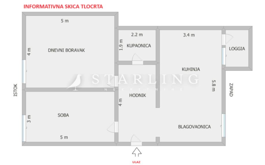 Po vlasničkom listu stan je dvosoban, ali postoji mogućnost prenamjene prostora.