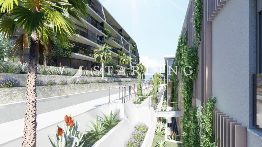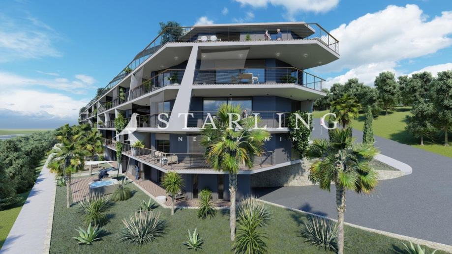 Luksuzni stan ukupne stambene površine 50,46 m2, na fenomenalnoj lokaciji, prvi red do mora, s prekrasnim pogledom na more. Stan se nalazi na prvom katu urbane stambene zgrade koja ukupno ima trideset i šest stanova.
