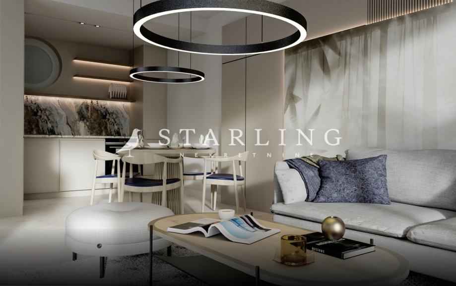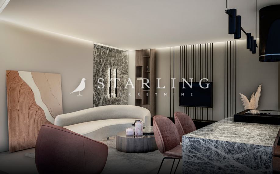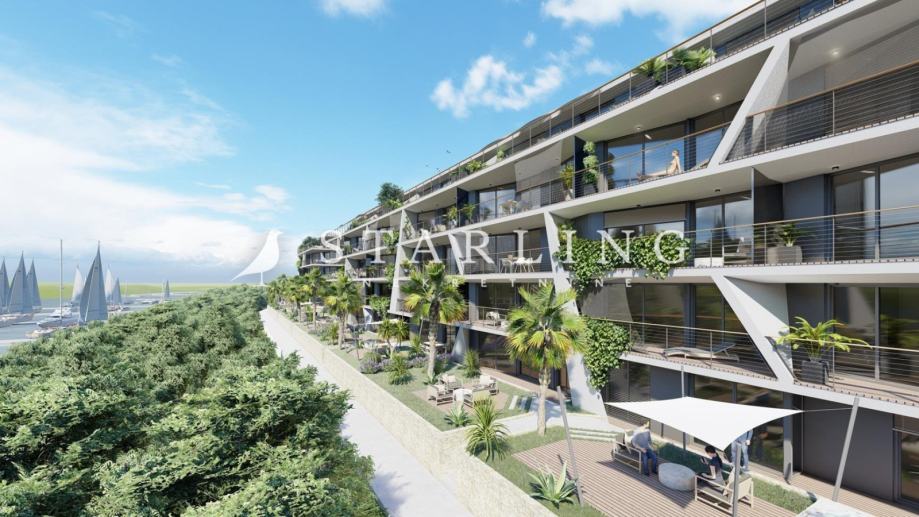 Luksuzni stan ukupne stambene površine 50,44 m2, na fenomenalnoj lokaciji, prvi red do mora, s prekrasnim pogledom na more. Stan se nalazi na prvom katu urbane stambene zgrade koja ukupno ima trideset i šest stanova.