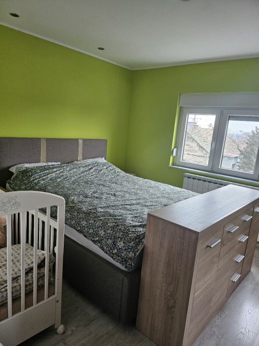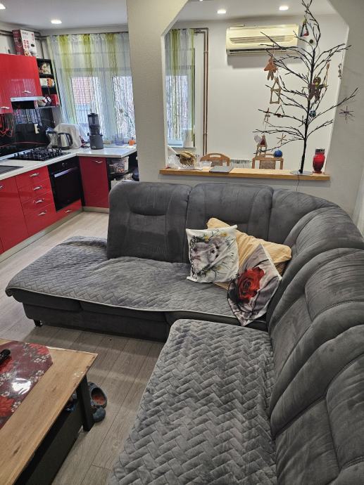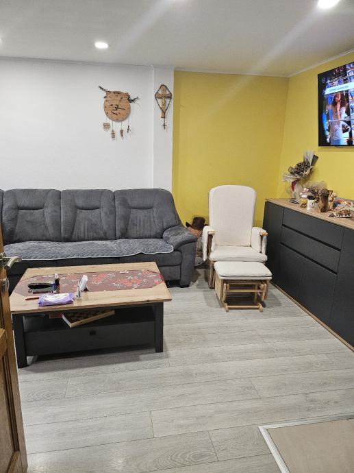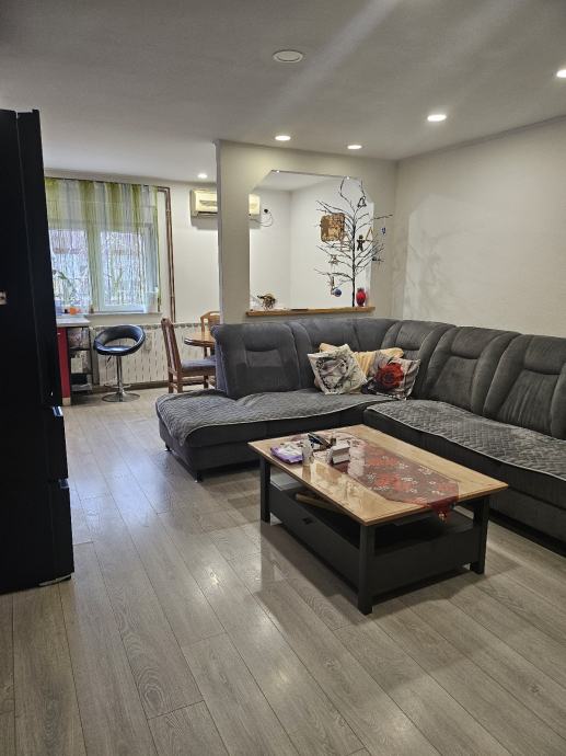 Sastoji se od hodnika,kupatila,ostave,dvije spavaće sobe,boravak s kuhinjom,balkon i pripadajuća šupa te dvorište zajedničko.Stan je pogodan za manje obitelji te samce ili investicija za najam,vrlo dobrog rasporeda te na atraktivnoj lokaciji,neposredna blizina tržnice,doma zdravlja,autobusne,mirovinskog,a sve ostale važnije lokacije su na 15min.pješke.U blizini se nalazi ekonomski,pravni,efos,ali ni kampus nije daleko.Kompletno renoviran 2014,struja,voda,podovi,zidovi izolacija stropa,te rigips na stropu.Stan je smješten na trećem ujedno i zadnjem katu bez lifta,te nema buke od stanara iznad.Energetski razred C.