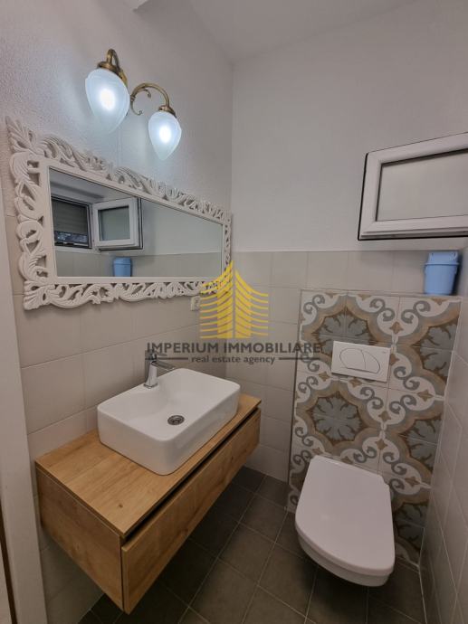 Za ugodnu klimu u prostoru brine klima uređaj, a stan posjeduje i energetski certifikat razreda A, što jamči visoku energetsku učinkovitost. Mirna lokacija u neposrednoj blizini mora čini ovu nekretninu posebno privlačnom za one koji traže svakodnevni mir i kvalitetan životni stil, a istovremeno žele uživati u blagodatima obalnog područja.