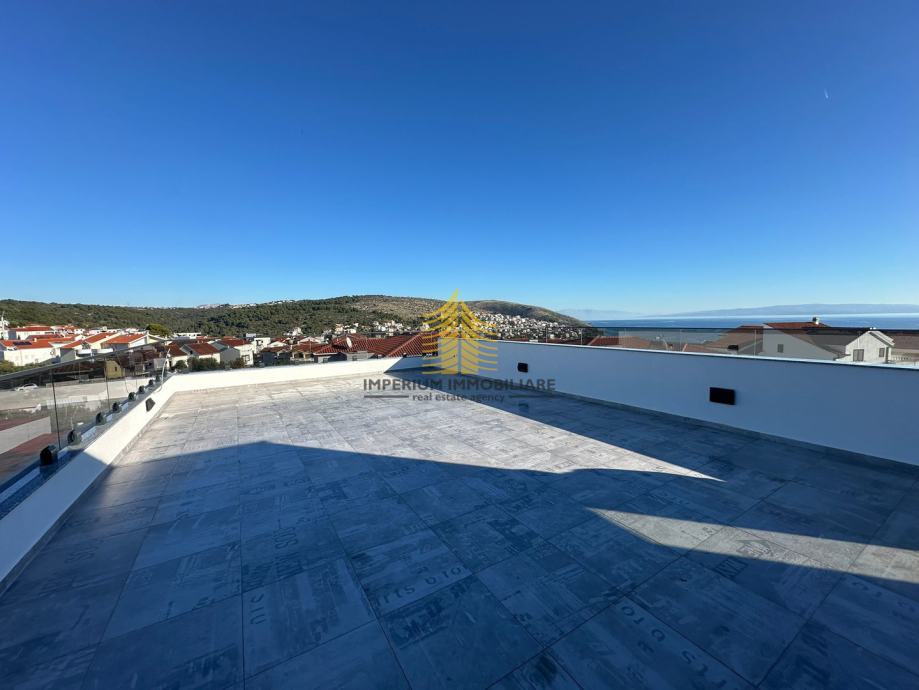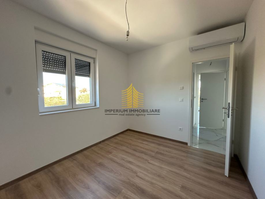 Stan se nalazi u novogradnji iz 2026. godine, što osigurava visoke standarde gradnje i suvremen dizajn. Lokacija u Okrugu Gornjem poznata je po mirnom okruženju, blizini prirode i uređenoj okućnici, čime pruža izniman ambijent za stanovanje ili investiciju. Poseban naglasak stavlja se na vrlo sunčanu poziciju i otvoren pogled na more, što dodatno doprinosi kvaliteti života.