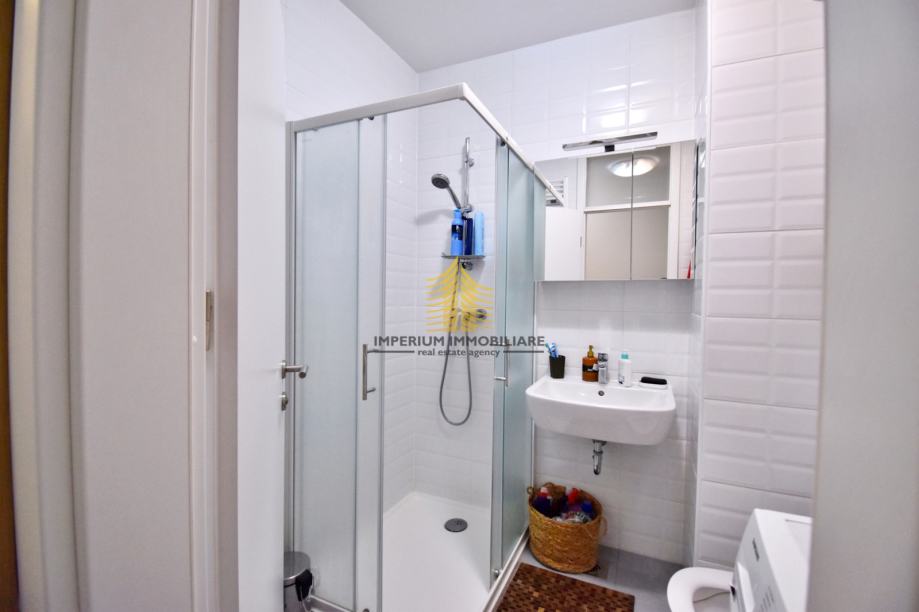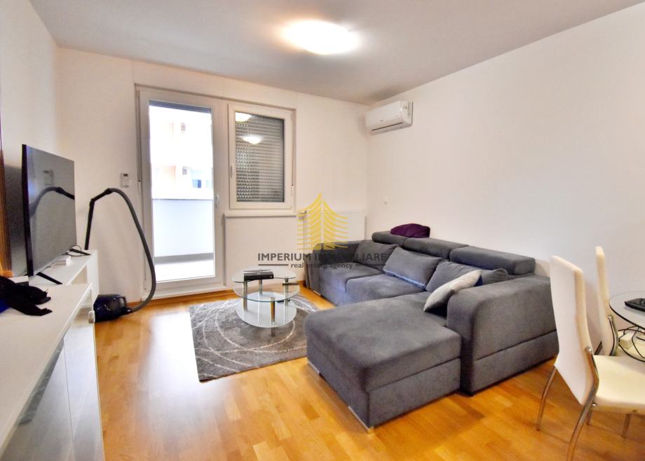 Stan je funkcionalno organiziran s jednom spavaćom sobom, dnevnim boravkom, kupaonicom te moderno opremljenom kuhinjom sa svim potrebnim aparatima. Dodatnu udobnost pružaju lođa i dizalo, dok su za sigurnost ugrađena protuprovalna vrata. Grijanje je osigurano preko toplane, a za dodatni komfor tijekom cijele godine tu je klima uređaj. Optički internet omogućuje brzu i pouzdanu povezanost.