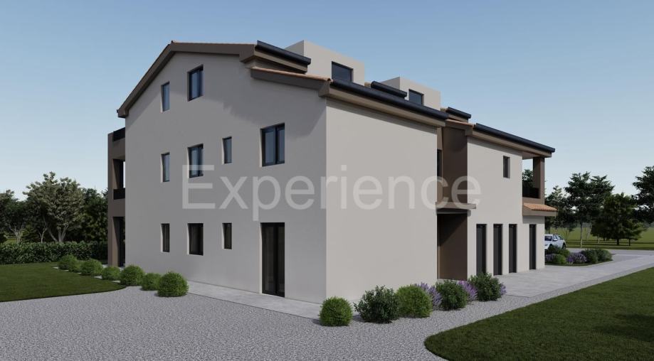 U okolici Poreča – cca. 7 km od mora i centra grada, u iznimno mirnom ambijentu nalazi se penthouse u izgradnji, ukupne površine 120,30 m². Penthouse se nalazi na drugom ujedno i posljednjem katu intimne stambene zgrade sa svega 5 stambenih jedinica. Sadrži: predsoblje, otvoreni i svijetao prostor u kojem su smješteni dnevni boravak, kuhinja i blagovaonica sa izlazom na prostranu natkrivenu terasu (20 m²), tri spavaće sobe svaka sa izlazom na prostranu terasu i dvije kupaonice.