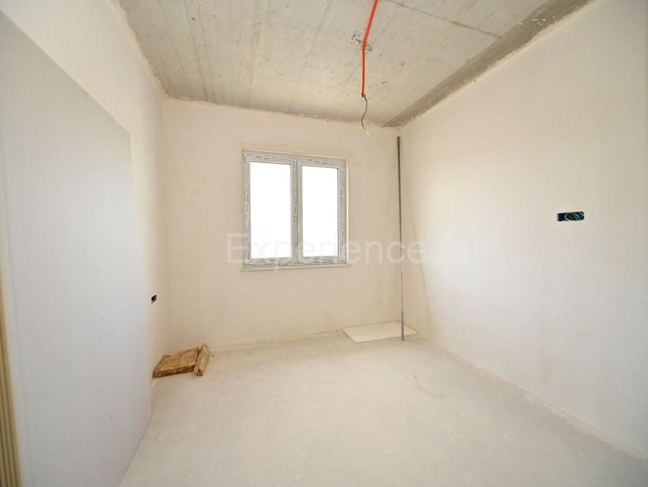 NA ATRAKTIVNOJ LOKACIJI, u Poreču – cca. 600 metara od plaže na prodaji je četverosoban stan, ukupne površine 103.29 m². Stan se nalazi na prvom katu novoizgrađene rezidencijalne zgrade. Stan sadrži: predsoblje, dnevni boravak, kuhinju i blagovaonicu sa izlazom na prostranu natkrivenu terasu (12.06 m²), tri spavaće sobe svaka sa vlastitom kupaonicom. Sa terase pruža se djelomice pogled na more.