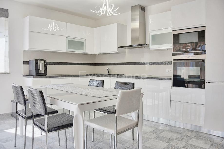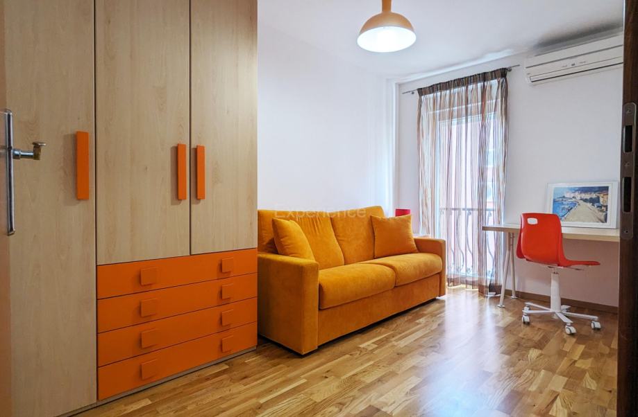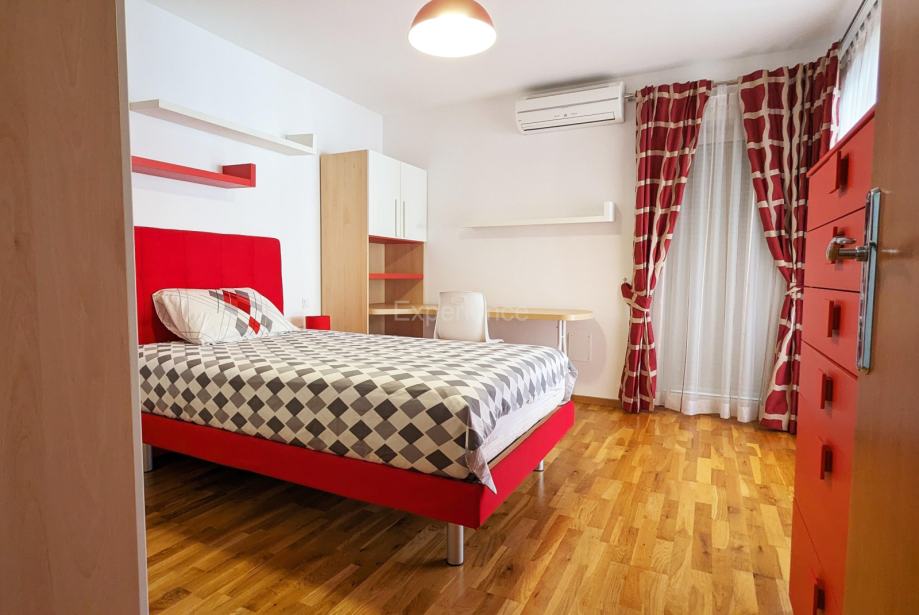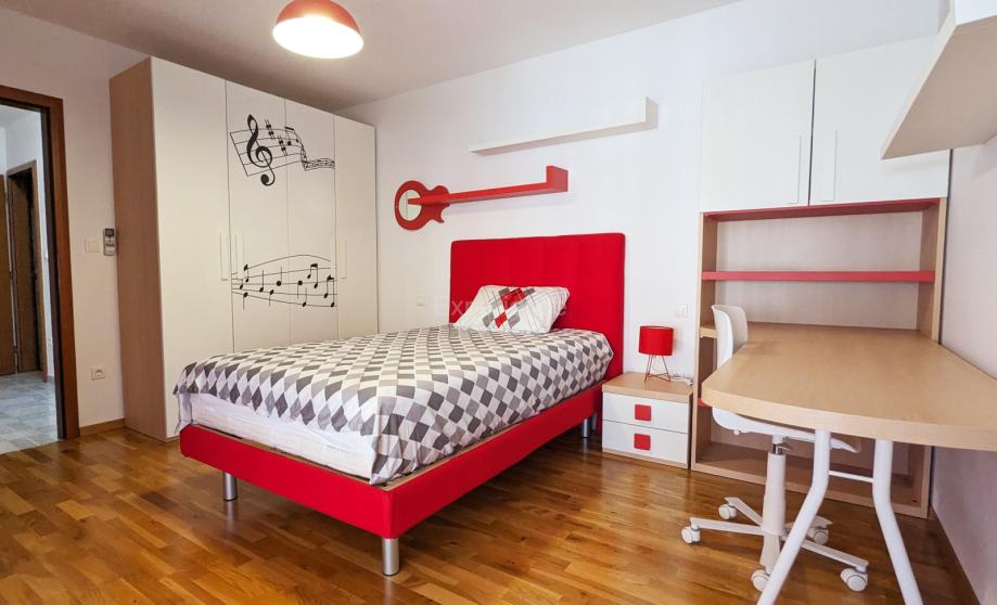 Stan se prostire na 119 m² i odlikuje se promišljenim rasporedom koji osigurava udobnost i funkcionalnost:- Prostrani dnevni boravak s blagovaonicom i izlazom na sunčanu terasu,- Moderna, potpuno opremljena kuhinja s vrhunskim aparatima,- Tri prozračne spavaće sobe, od kojih dvije imaju izlaz na terasu,- Dodatna soba, savršena za home office ili gostinjsku sobu,- Elegantna kupaonica s kadom i tuš kabinom + odvojeni toalet za goste.