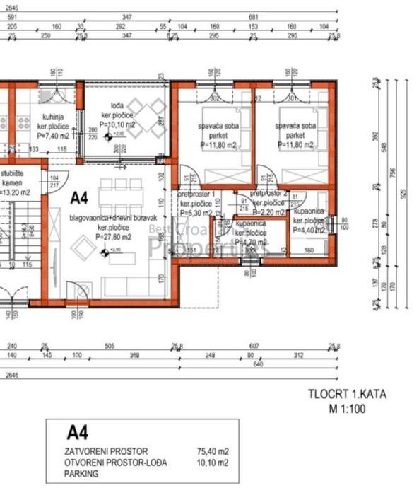 Sami stan (S4) je ukupne zatvorene površine 75.40m2 te dodatne loggie (sa koeficijentom 7.60m2) UKUPNO STAN = 83 m2.