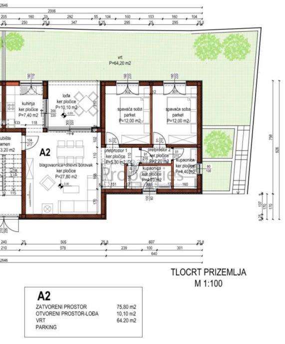 Uz stan su u cijenu uključeno i 1 vanjsko PARKIRNO mjesto i vrt od 64.20 m2.
