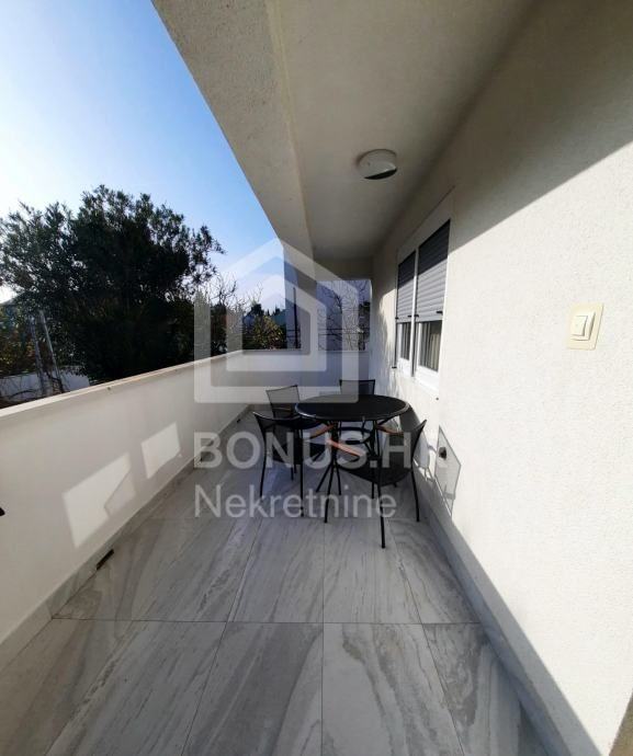 Sastoji se od: terase, hodnika, wc-a, kupaonice, dnevnog boravka, kuhinje, ostave i dvije sobe.
