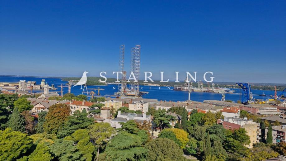 Ovaj funkcionalan stan površine 55 m² smješten je na 12. katu zgrade s liftom, što mu osigurava spektakularan panoramski pogled na Pulu i more te obilje prirodnog svjetla tijekom cijelog dana.
