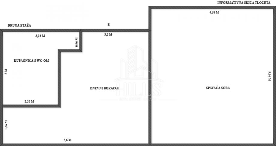 DRUGA ETAŽA: dnevni boravak, spavaća soba, kupaonica s wc-om. ukupne površine cca 50 m2 (vanknjižno vlasništvo)