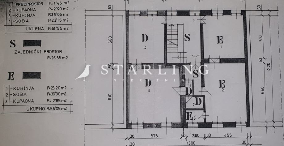 Druge etaže površine 61 m2; predprostor, kupaonica, kuhinja i soba.