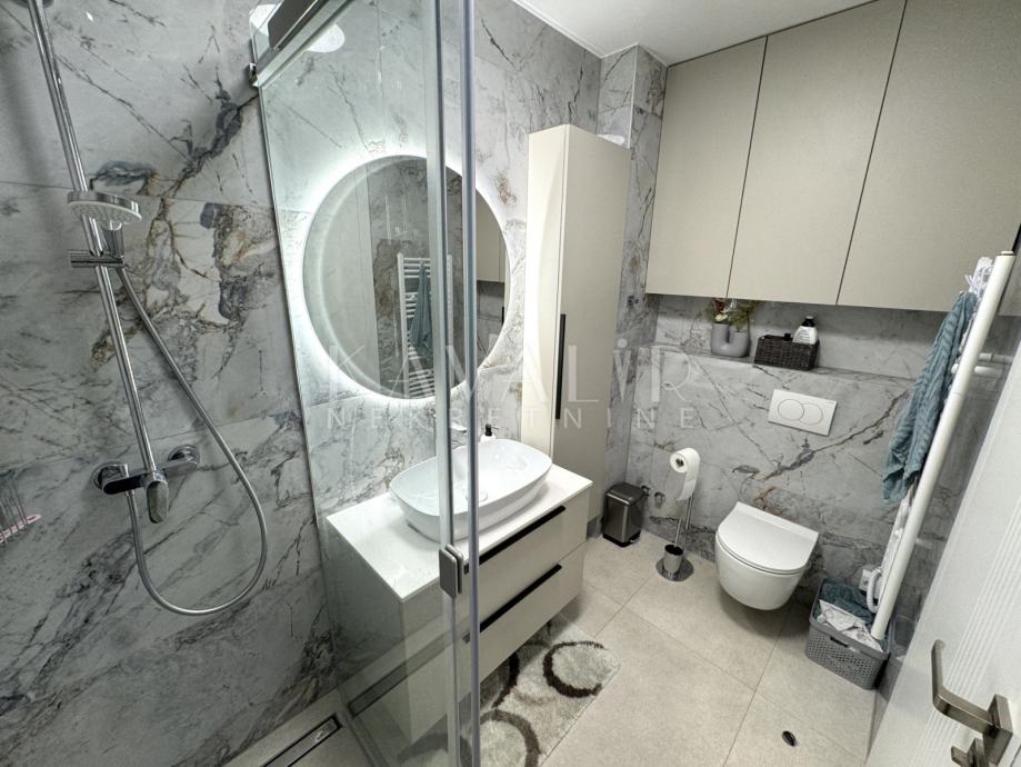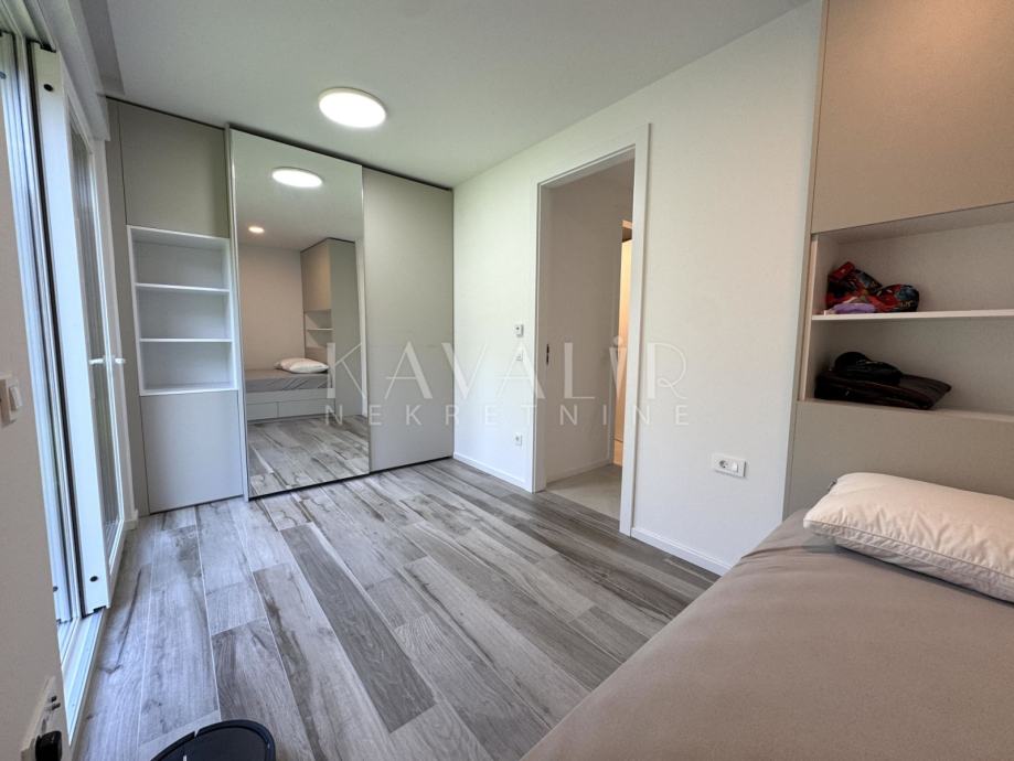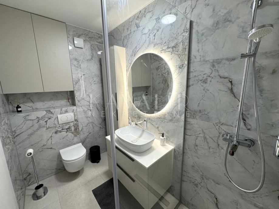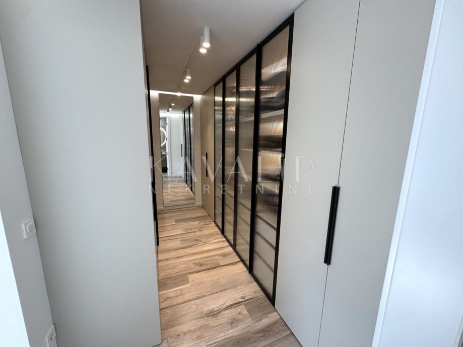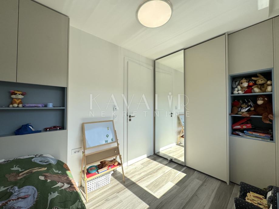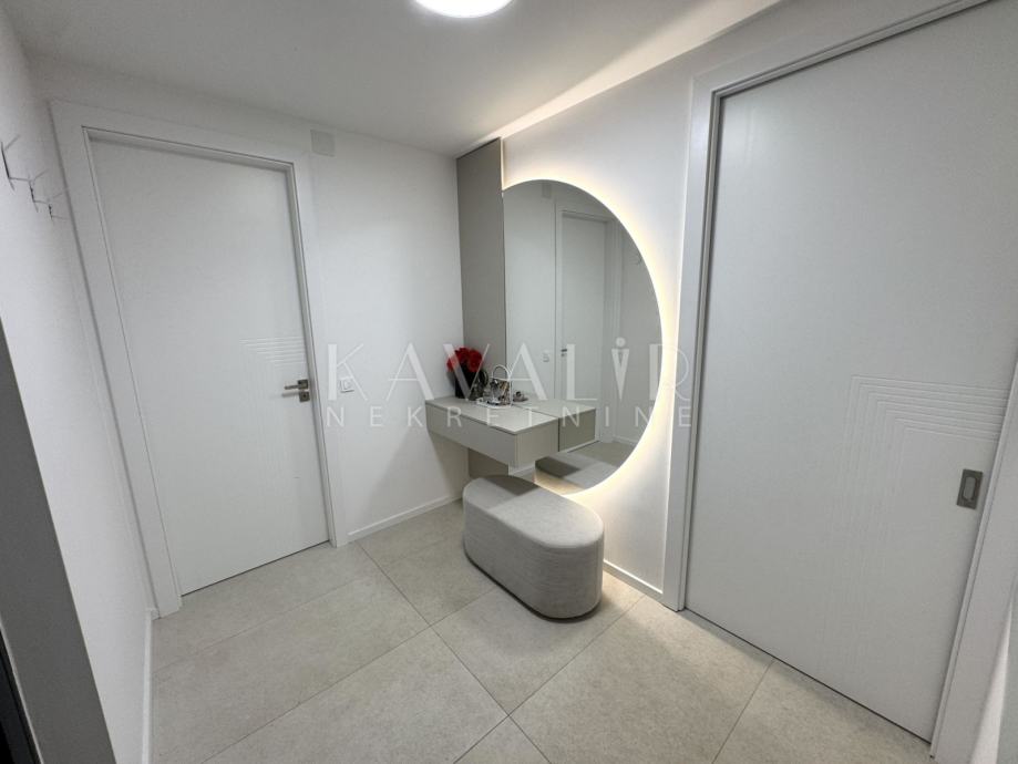 Stan je opremljen podnim grijanjem putem dizalice topline te se prodaje u potpunosti namješten sa modernim uređenjem i smart home sustavom.