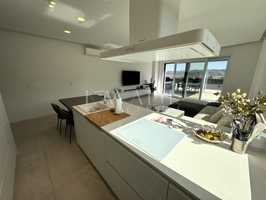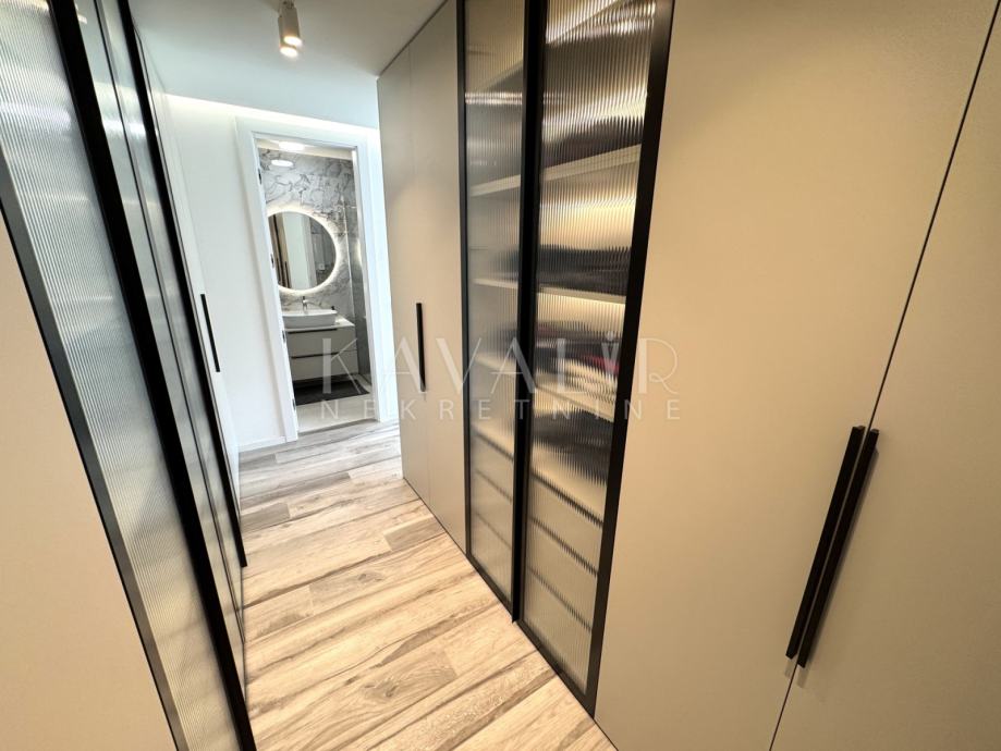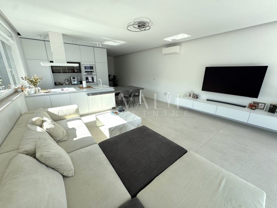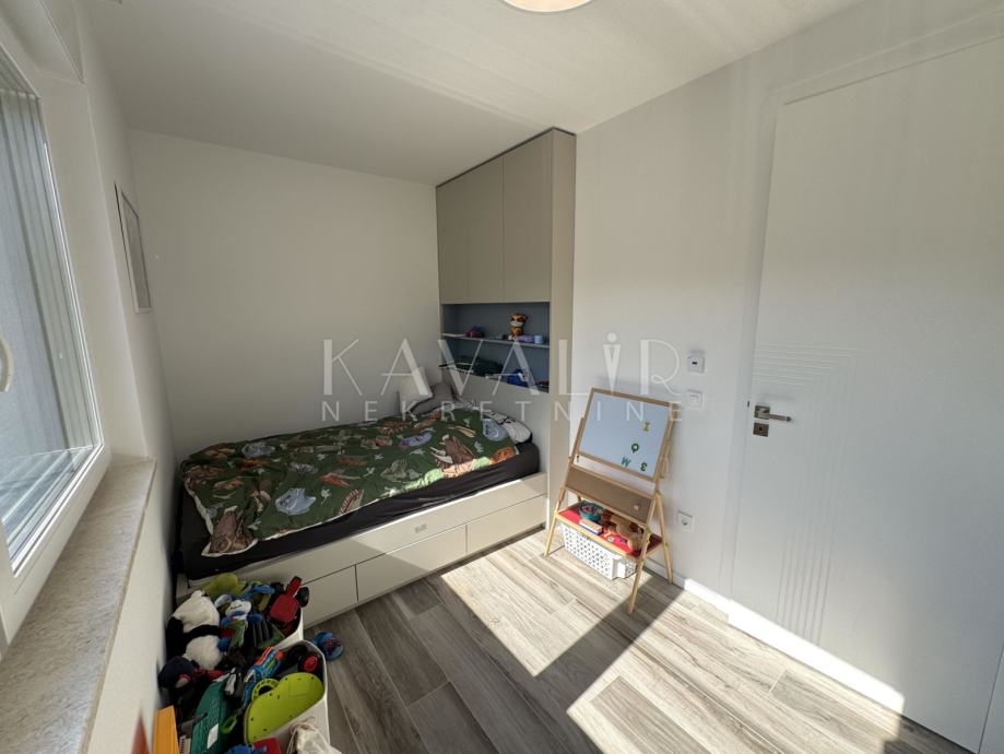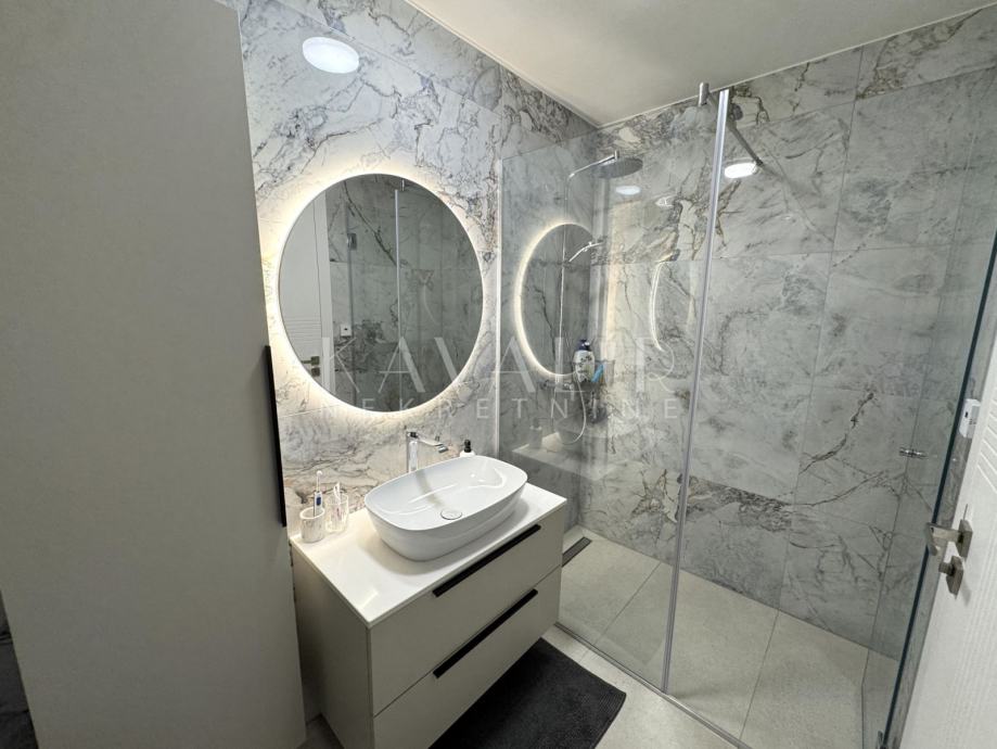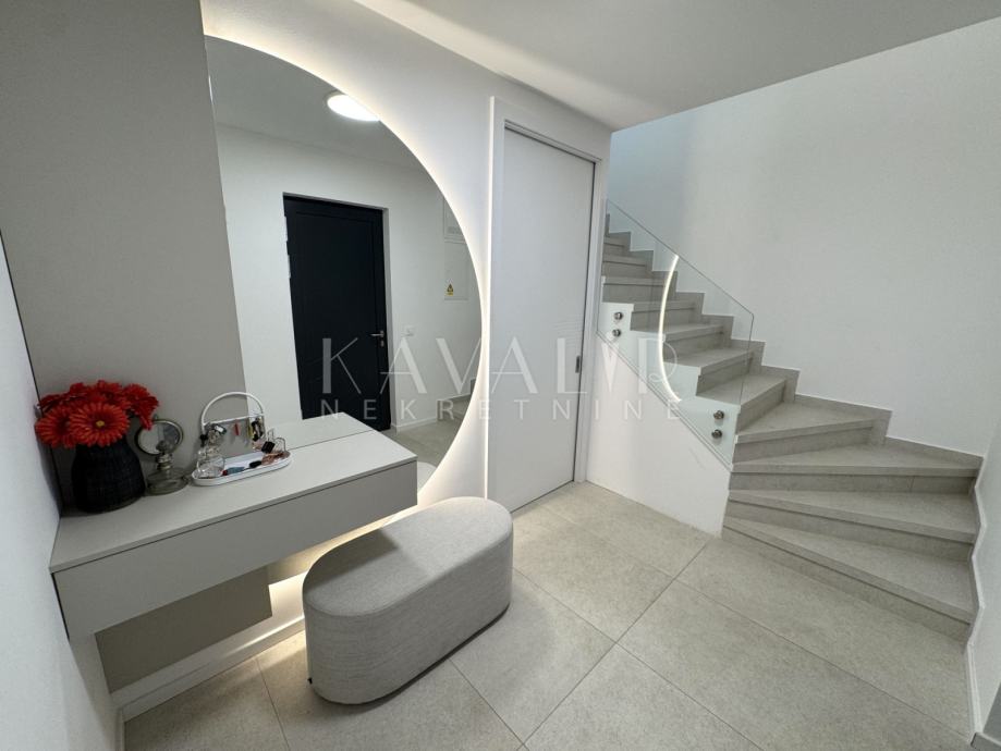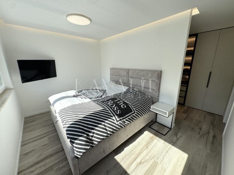 Stan je opremljen podnim grijanjem putem dizalice topline te se prodaje u potpunosti namješten sa modernim uređenjem i smart home sustavom.