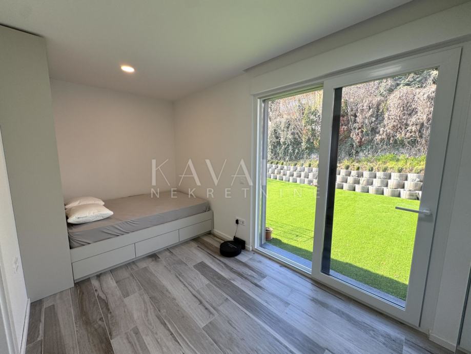 prostrani open space dnevni boravak s kuhinjom i blagovaonicom, dvije spavaće sobe, kupaonica, hodnik te privatni vrt.