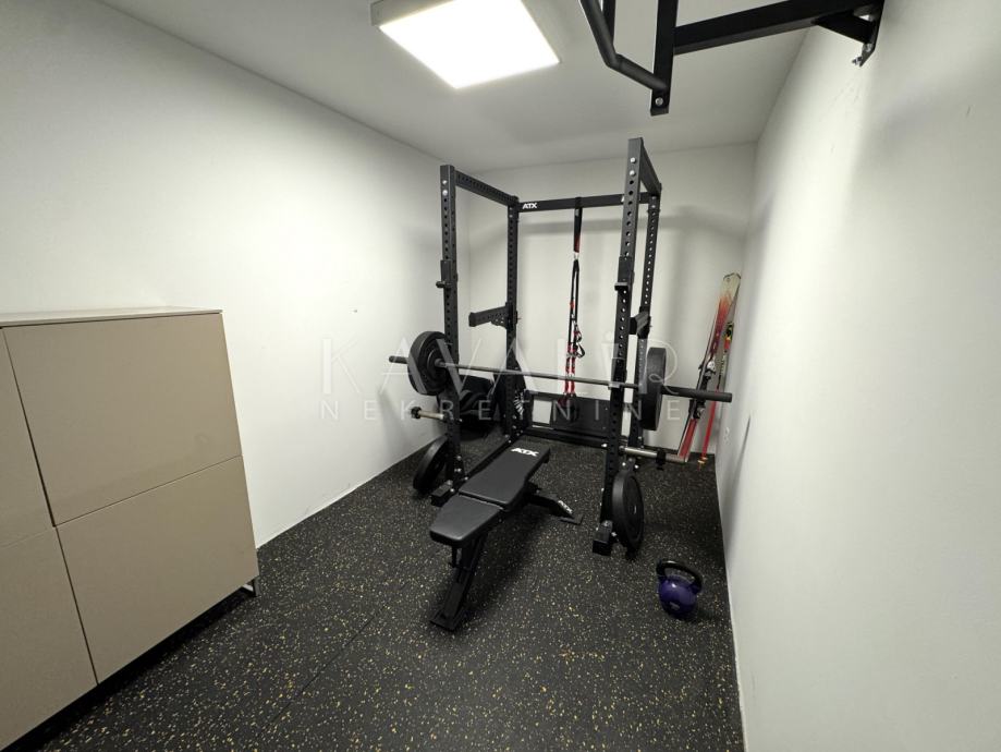 Uz stambeni dio, stanu pripada i spremište u podrumu površine 11 m², koje je trenutno prenamijenjeno u teretanu. Osim toga, stanu pripada i garaža površine 33 m² te vanjsko parkirno mjesto od 13 m².