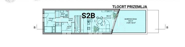 Na prodaju je dvoetažni četverosobni stan ukupne netto korisne površine 113 m², smješten u prizemlju i prvom katu moderno dizajnirane zgrade.