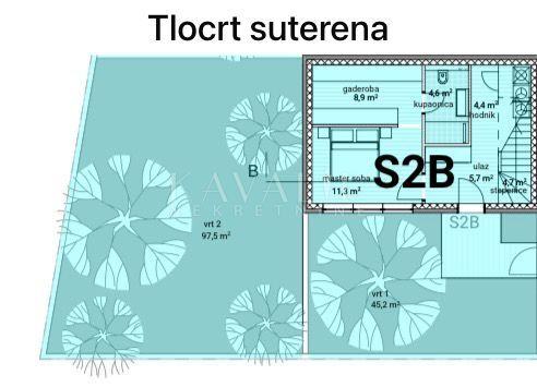 ulazni hodnik, prostrana master spavaća soba s garderobom i kupaonicom, ostava te privatni vrt.