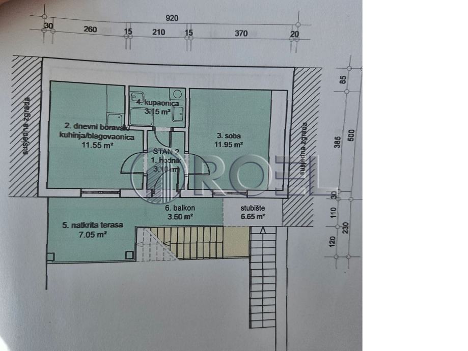 Stan je etažiran, vlasništvo je uredno te je moguća i kupnja na kredit.