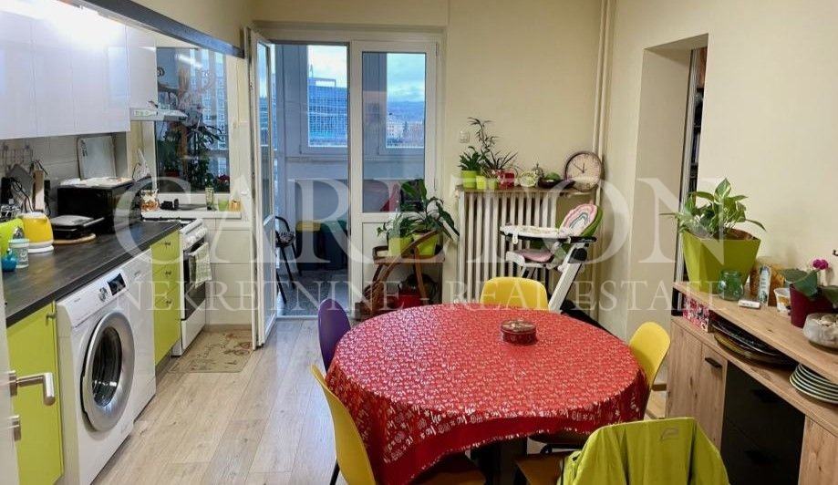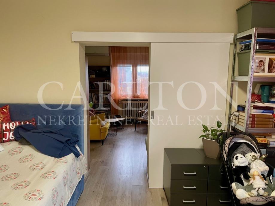 Prodaje se potpuno namješten dvosobni stan spreman za useljenje. Stan se nalazi na 8-om katu, zgrada ima 2 lifta i naplatni parking ispred i okolo zgrade.Stan se sastoji od ulaznog predsoblja koje sadržu ugradbeni ormar i iz kojeg se ulazi u kuhinju (sjever), spavaću sobu (istok) ili kupaonu (zapad). Iz kuhinje/blagavaone se ulazi na veliku zatvorenu lođu s koje puca pogled na Medvednicu. U dnevni boravak je moguće ući ili iz spavaće sobe ili iz kuhinje/blagavaone. Više slika, tlocrt i video uskoro.Tramvajska stanica na 1 minutu od nebodera (3 tramvajske linije), Dom zdravlja s apotekom na 3 minute, jaslice na 5 minuta, a škola i vrtić na 7-10 minuta udaljenosti. SuperKonzum sa pratećim trgovinama preko raskršća (vidi se s prozora!). Dva dječja parka potpuno opremljena (penjalice, ljuljačke, stijena za male penjače), iza škole veliki ograđeni park. Pogodno za mlade obitelji.Stan je u potpunosti obnovljen 2022 - instalacije (voda i struja), uređaji svi, kompletna kupaona, kuhinja, stolarija (vanjska i nutarnja), protuprovalna vrata, 90% namještaja, podovi itd..Ulazna vrata sa šifrom ili zvono na interfonu, uz kameru. Održavana zgrada, prijavljena za energetsku obnovu fasade. Unedavnim potresima zgrada nije pretrpila nikakva oštećemnja i dobila je zelenu naljepnicu odmah.Vlasnički list 1/1, svi papiri uredni.