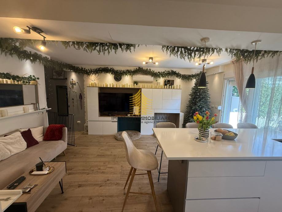 Posebnu prednost ove nekretnine predstavlja uređena okućnica, koja uključuje vlastiti vrt i dvorište – idealno za opuštanje, druženje s obitelji ili uređenje prema vlastitim željama. Dodatna pogodnost je ostava/skladište, pružajući dodatni prostor za pohranu. Stan je opremljen podnim grijanjem , što jamči ugodnu temperaturu tijekom cijele godine. Osiguran je i vlastita dva parkirališna prostora