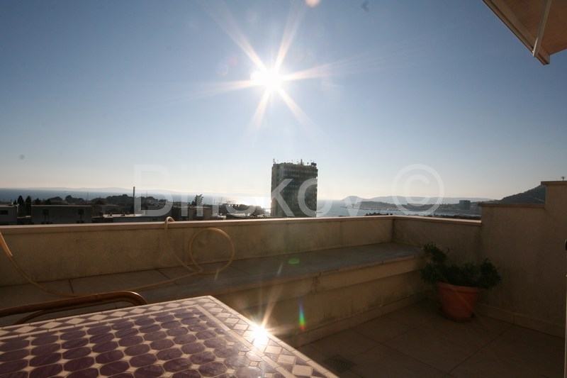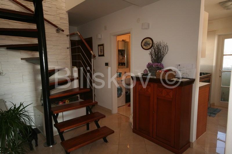 Split - Lučac. Prekrasan dvoetažni stan s otvorenim pogledom obračunate površine 102,70 m2 (u naravi više zbog kosina i otvorene terase), smješten na 3. i 4. katu stambene zgrade par minuta šetnje udaljen od rive.