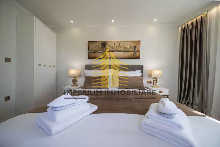 Stan se sastoji od dvije spavaće sobe te posjeduje balkon, što omogućuje ugodan boravak na otvorenom i uživanje u pogledu. Unutrašnjost stana odlikuje dizajnerski pristup, naglašavajući moderan i estetski ugodan ambijent.