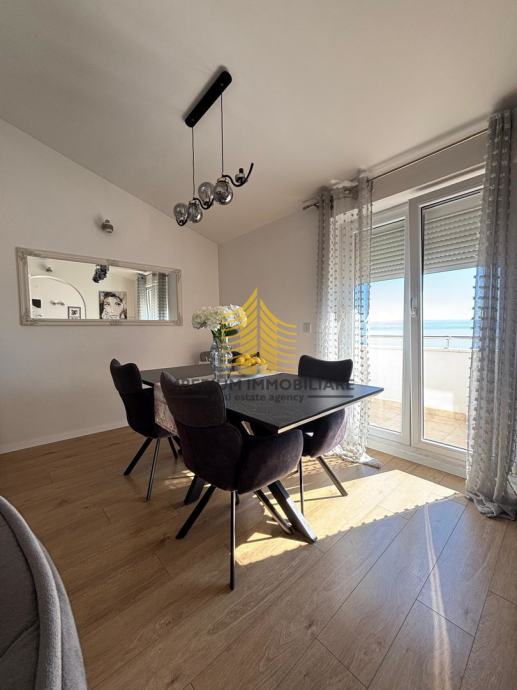 Ova nekretnina ističe se izuzetnom lokacijom te mirnim okruženjem, savršenim za obiteljski život ili investiciju. Stan ima jugo i sjevernu orijentaciju, pružajući obilje prirodne svjetlosti te predivan pogled na more. Dodatnu vrijednost donose karakteristike poput vrlo sunčanog položaja i činjenice da se nalazi na zadnjem katu, što jamči mir i privatnost.