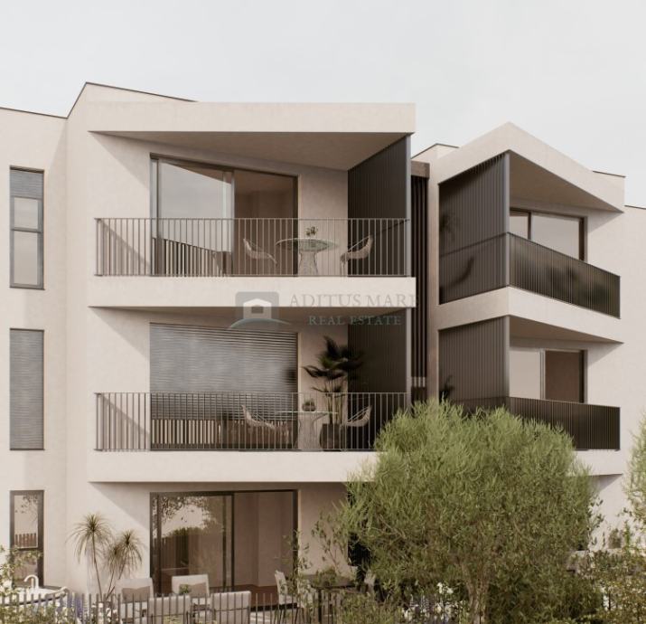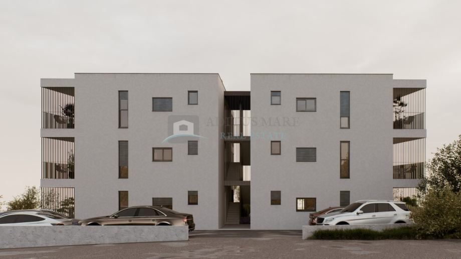Poštovani kupci, u ponudi je nova zgrada smještena u naselju Srima, udaljena od mora i plaže svega 600m.