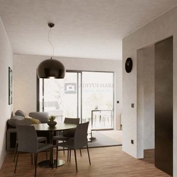 -Sastoje se od: ulaznog hodnika i garderobe, dvije spavaće sobe, dnevnog boravka sa kuhinjom i blagovaonom, kupaonice te izlaza na terase. Pripada im po jedno parkirno mjesto. CIJENA: 3400,00€/m2