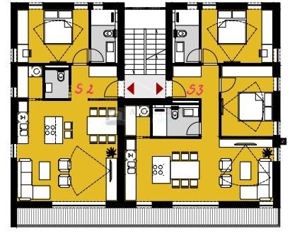 -Stan S3 raspolaže neto korisnom površinom od 65,65m2 te se sastoji od dnevnog boravka i blagovaone, kuhinje, spavaće sobe, kupaonice, toaleta, spremišta te balkona. Pripada mu parkirno mjesto. CIJENA: 223.210,00€