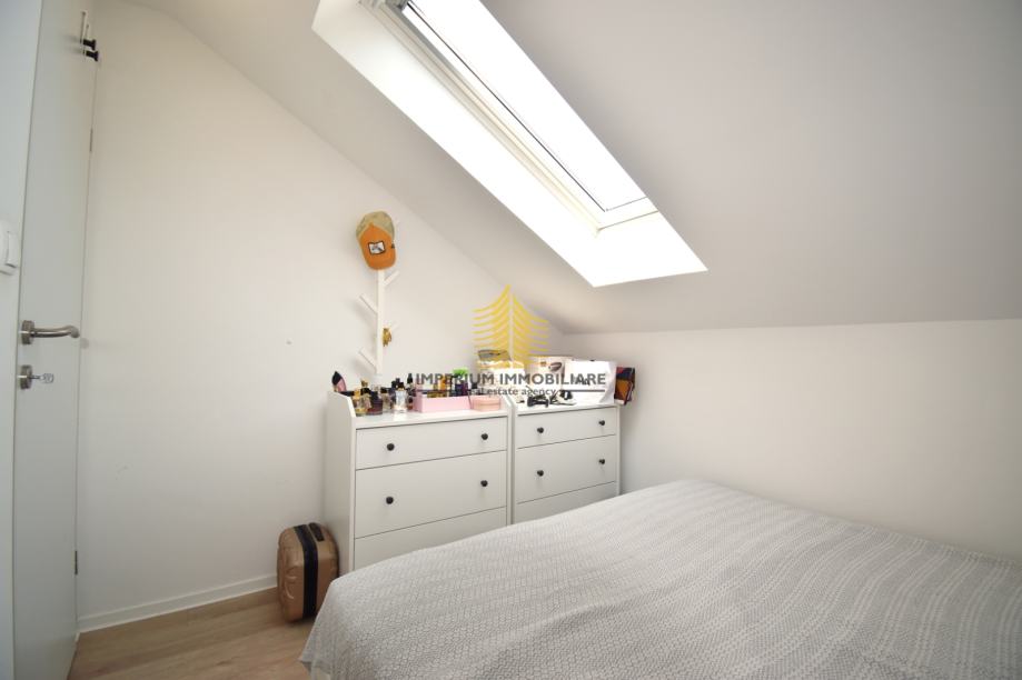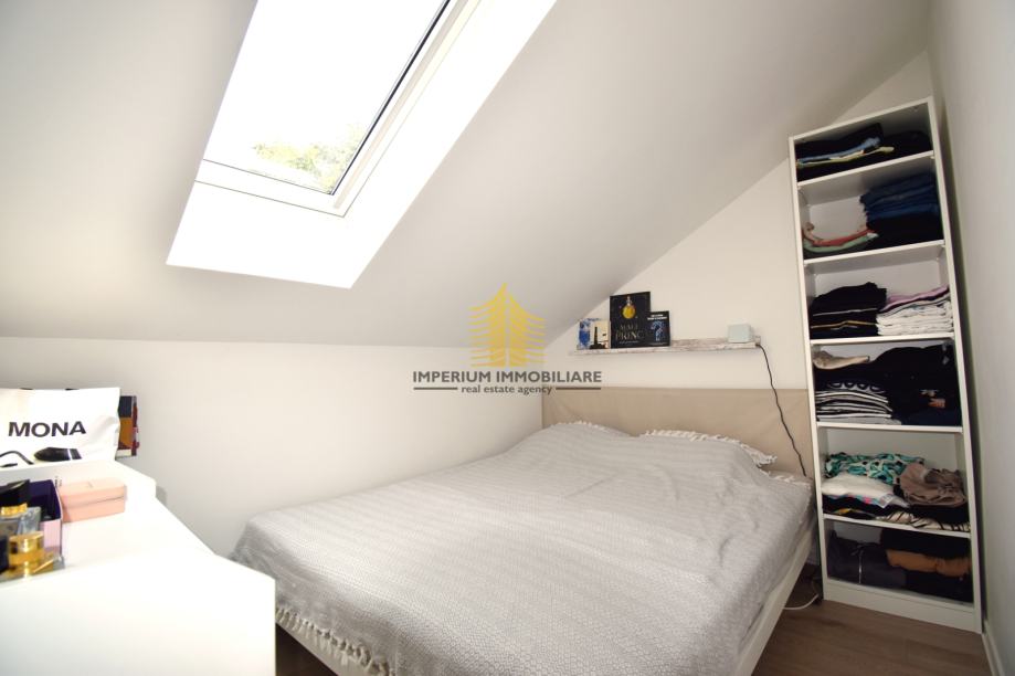 Ugrađeni su Velux krovni prozori izvrsne kvalitete. Stan je u potkrovlju no dio krova ne umanjuje visinu kroz cijelu kvadraturu stana.
