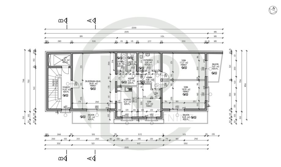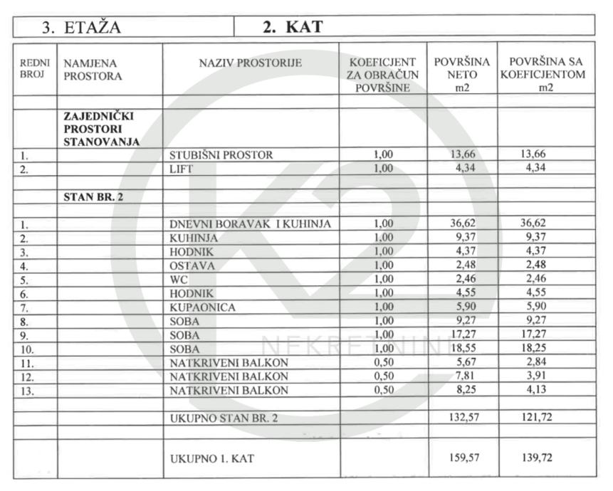 Stan na drugom katu ukupne površine 134,22 m2 sastoji se od: