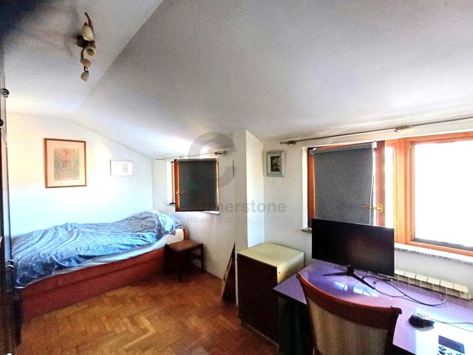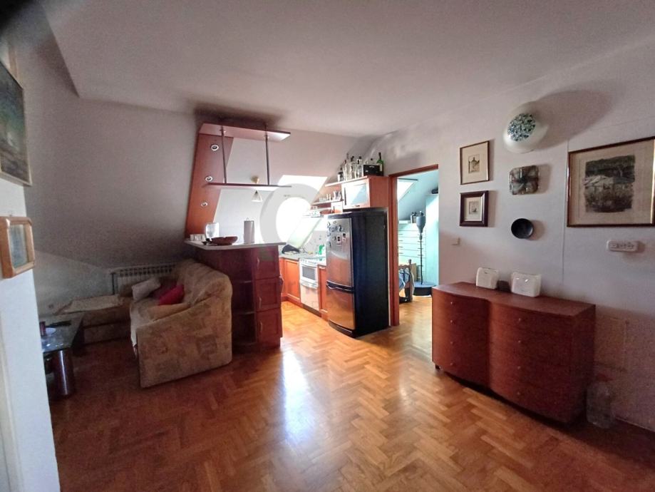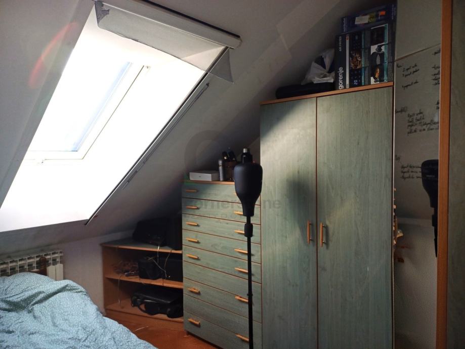 Stan u Rudešu, u potkrovlju zgrade na 4.katu. Stan je ukupne površine 65,45m² . Stan se sastoji od ulaznog hodnika, open-space dnevnog boravka i kuhinje, manje i veće spavaće sobe te kupaonice sa kadom i toaletom. Stolarija u stanu na južnoj strani (boravak) je PVC, a na sjevernoj strani je drvena stolarija (spavaće sobe).