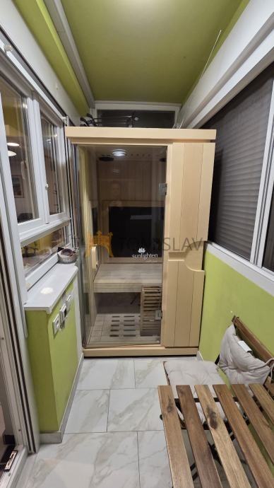 Prodaje se moderno uređen i potpuno renoviran trosobni stan na Trešnjevci sa odličnim rasporedom, površine 64 m², smjestio se atraktivnoj lokaciji u širem centru grada, neposredno uz Kranjčevićevu ulicu. Stan je u potpunosti namješten, te spreman za useljenje bez dodatnih ulaganja. Stan ima i saunu tako da se možete opustiti nakon napornog dana. Potpuno nove instalacije struje, plinsko etažno grijanje, hlađenja te vodovoda i odvodnje. Svi energenti (struja, voda i plin) imaju zasebna brojila. Na svim prozorima uz elekotromotorne rolete, ugrađeni su rolo komarnici. Odličan raspored prostorija, kvalitetni materijali, velike staklene površine u svakoj prostoriji i ugodna atmosfera čine ovu nekretninu idealnom za ugodan život ili kao investiciju. Blizina tramvaja, autobusa, trgovina, škola, vrtića i svih važnih sadržaja. Izvrsna prometna povezanost javnim prijevozom sa svim djelovima grada. Besplatni javni parking.