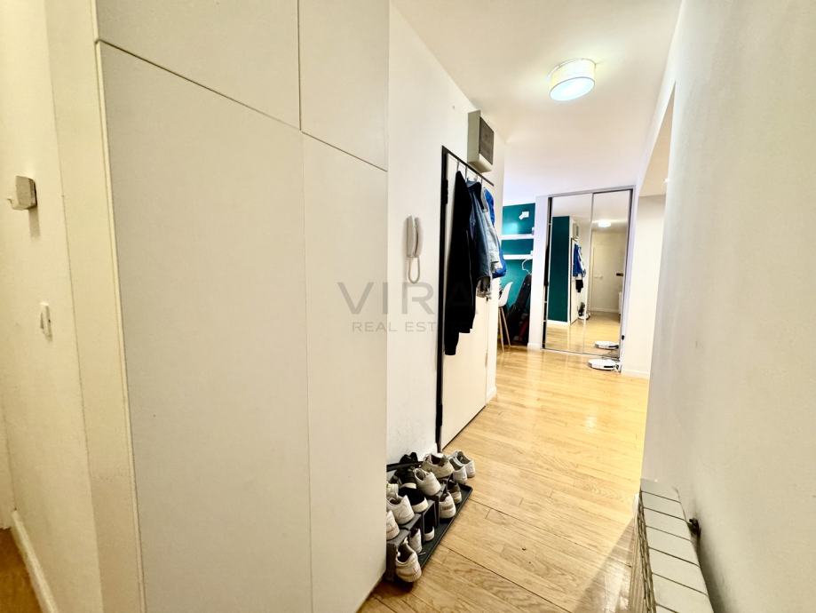 Stan se sastoji od dnevnog boravka, kuhinje, blagovaonice, 2 spavaće sobe, hodnika, kupaonice te 2 loggie.
