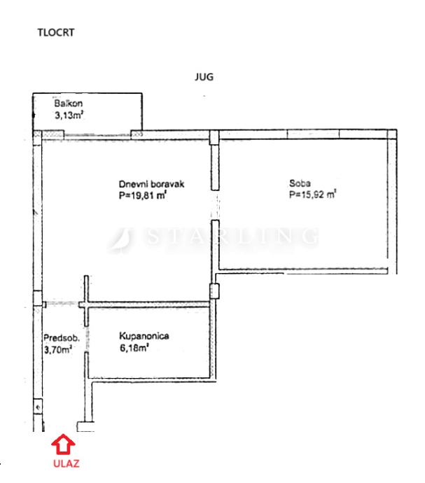 Stan se sastoji od dnevnog boravka s kuhinjom, spavaće sobe, kupaonice s WC-om, ulaznog hodnika te balkona.