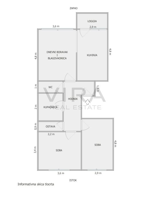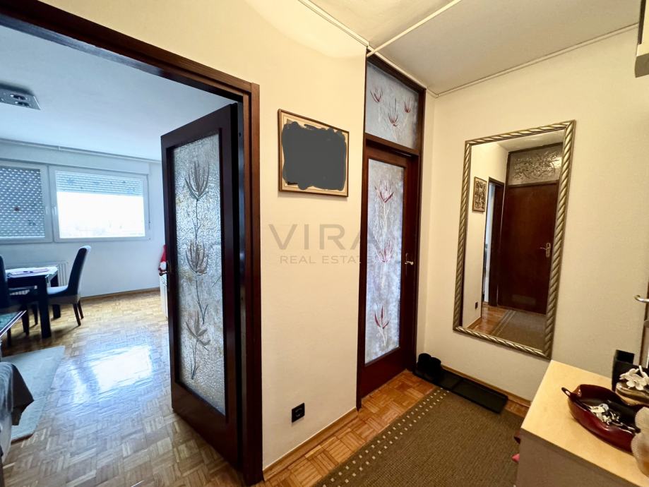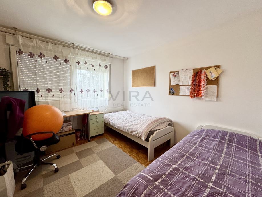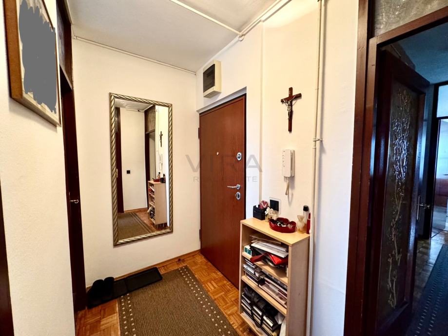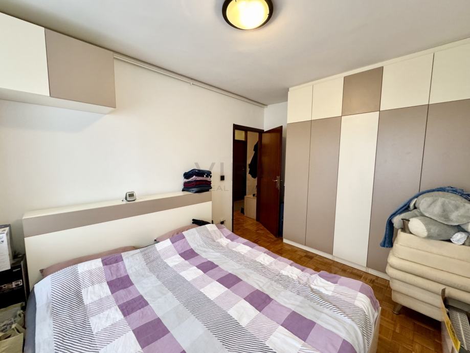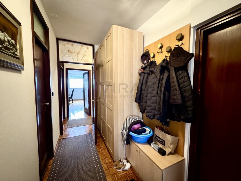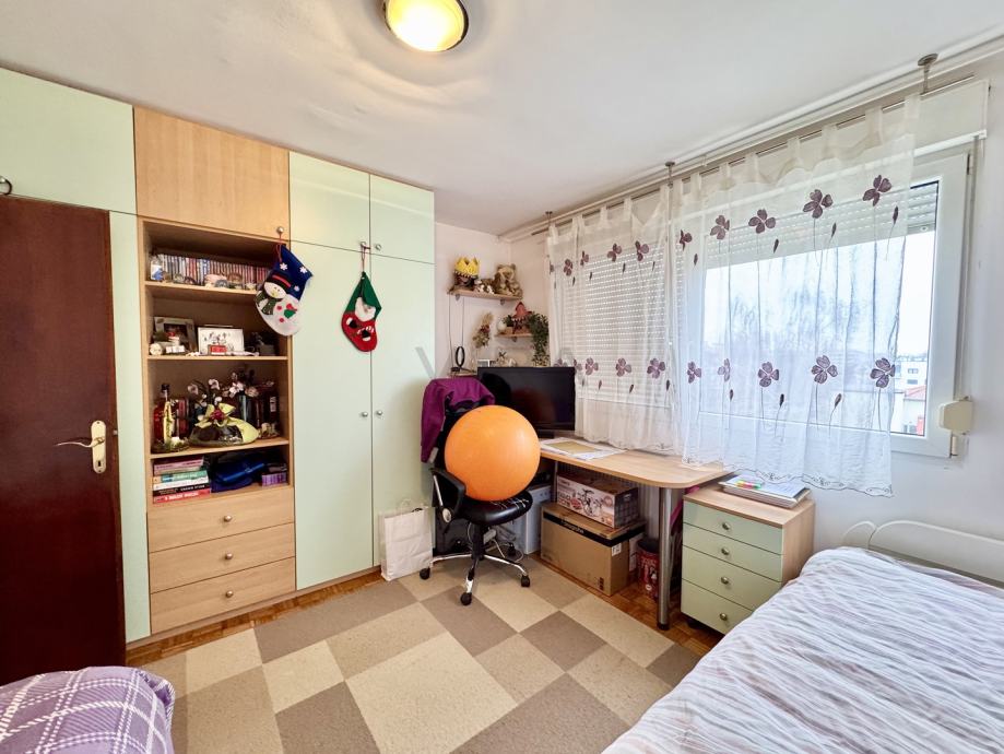 Stan se sastoji od dnevnog boravka, kuhinje, blagovaonice, 2 spavaće sobe, hodnika, kupaonice, wc-a, spremišta i loggie.