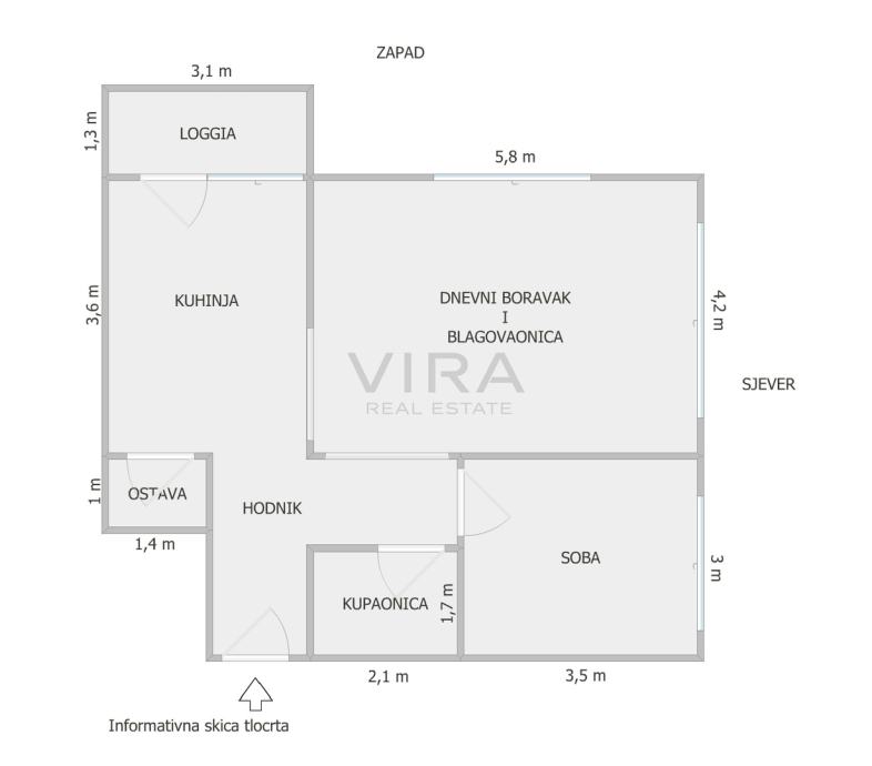 Stan se sastoji od dnevnog boravka, kuhinje, blagovaonice, spavaće sobe, kupaonice, hodnika i loggie.