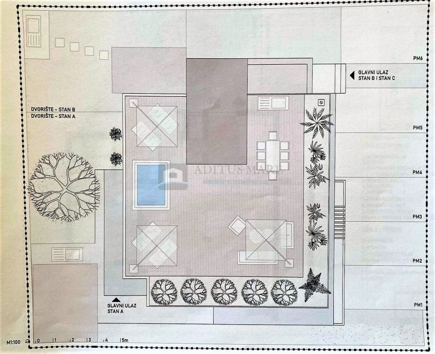 Svi stanovi su prostrani, puni svijetla te imaju pripadjući dio vrata ili krovnu terasu.