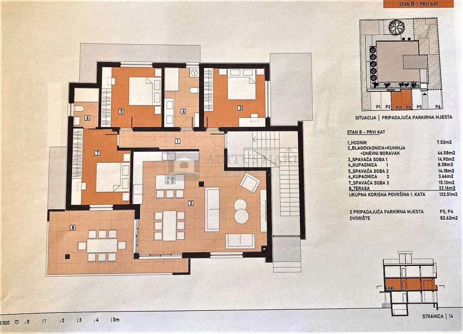 Ukupna korisna površina = 131,99 m2 + 127 m2 krovna terasa ( 169 m2 neto korisne površine )