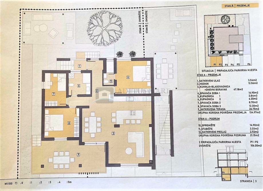 Ukupna korisna površina = 134,97m2 + 106 m2 vrt