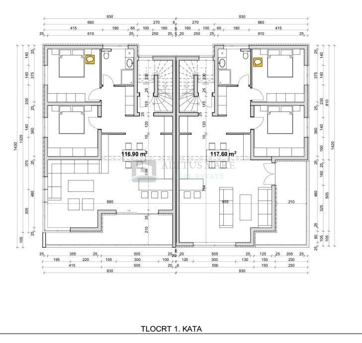 Prodaja dvoetažnog penthousa S2 smještenog na 1. i 2. katu vile, u naravi dvije spojene vile sa po dva apartmana.