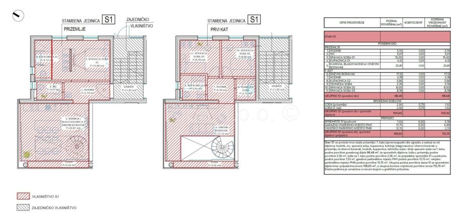 Nekretnini pripadaju i garažno parkirno mjesto, vanjsko parkirno mjesto na otvorenom te spremište u podrumu zgrade.