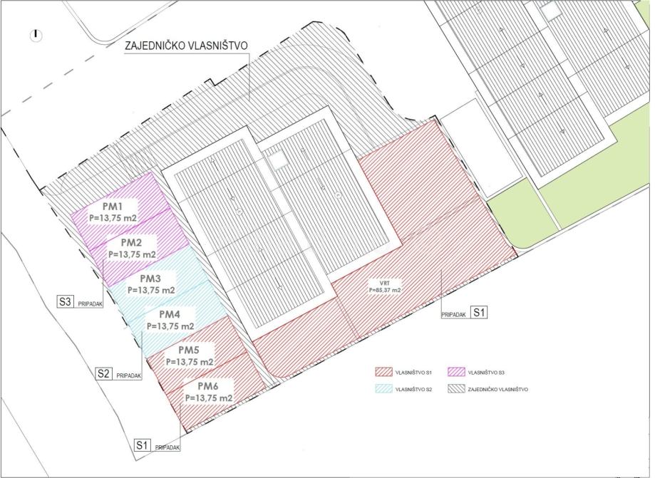 Vanjski Sadržaji i ParkingStanu pripadaju dva vanjska parkirna mjesta te privatno spremište u podrumu zgrade (korisne površine 4,62 m²). U podrumu je smještena i teretana s WC-om površine 32, 88 m² te igraonica površine 25 m².