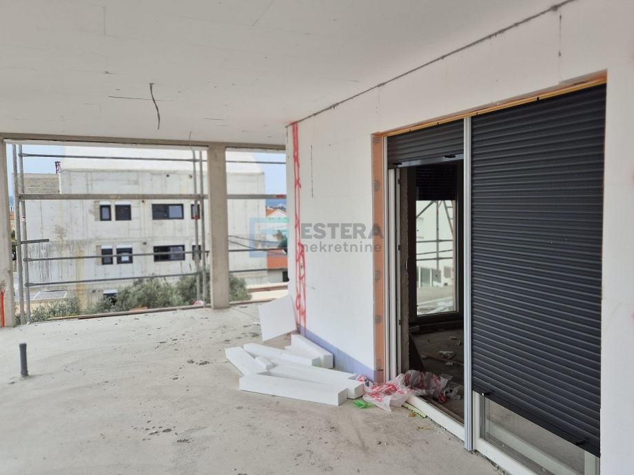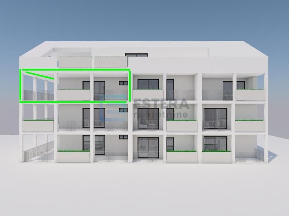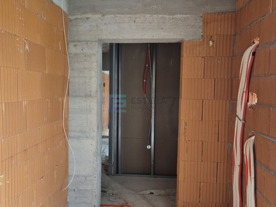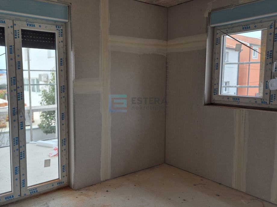 Zgrada je građena od armirane betonske konstrukcije protupotresnih karakteristika u kombinaciji s poroterm ciglenim blokom. Termo izolacija je debljine 10 cm stiropora s završnim silikatnim slojem, kombinacije bijele i antracit boje. Vanjska stolarija je PVC s aluminjskim roletama, s troslojnim staklom i komarnicima. Podovi su opločeni prvoklasnom keramikom i parketom (još je moguć odabir boje...). Grijanje je na klima uređaj s unutarnjim jedinicama u svakoj prostoriji, a u kupaonici će biti postavljeno električno podno grijanje (za sada je moguće ugovoriti i u ostalim prostorijama).