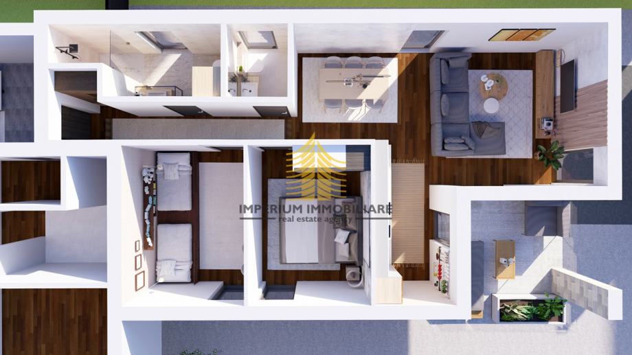 Sve vizualizacije interijera razvijene su isključivo za potrebe predstavljanja mogućnosti opremanja prostora potencijalnim kupcima i ne odnose se na izvedbene projekte uređenja.